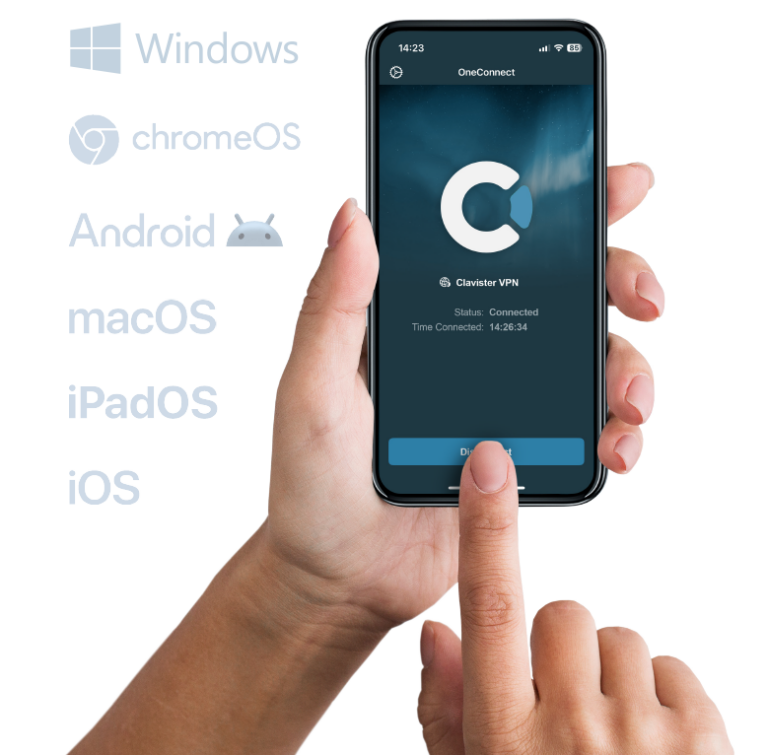 Clavister OneConnect is our VPN client that offers a simple and easy to use solution for remote access. Connecting securely is as easy as downloading and installing from common marketplaces or distributing using a device management software. Complement with Clavister IdAuth or Clavister IdAuth Cloud to benefit from strong authentication and single sign-on capabilities.